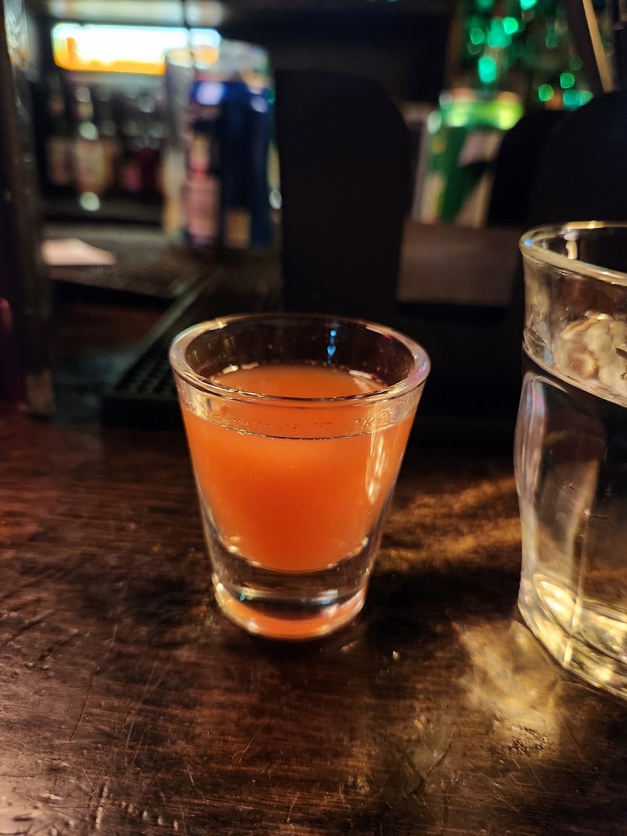 “The bartenders were great, and welcomed us with a house shot, which was yummy. Dark butt nice inside. Happy hour was a plus. Not a bad place to visit.”