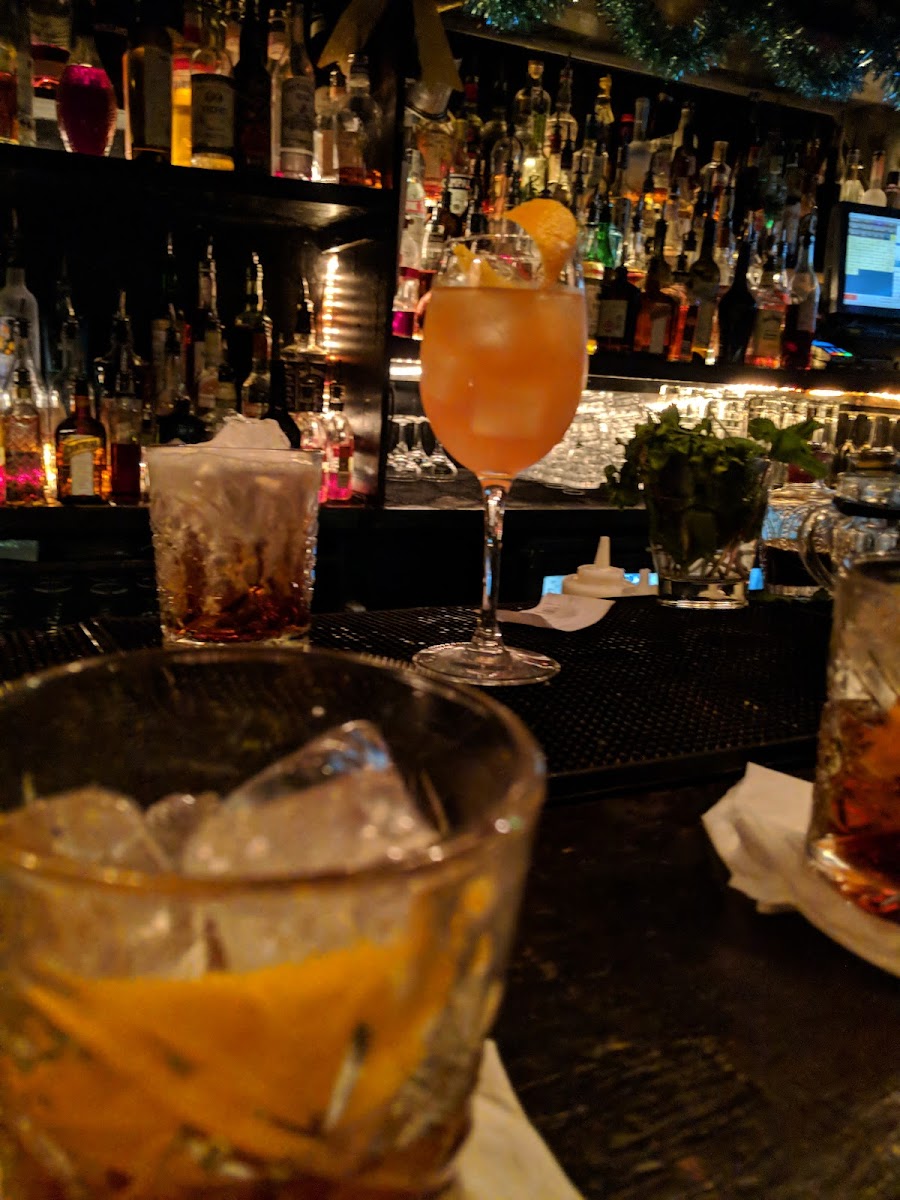 “An amazing small cocktail bar located underground in Leicester Square. Place allows people with either reservations or people who provide their email. Cocktails are nice but the staff are even nicer. They are incredinle friendly and always serving people with a smile. They definately seem to be having a lot of fun meanwhile working. It is a small cocktail bar but very cozy and looks like thr atmosphere tries to mix a bit of old traditional style with a bit of an alchemical laboratory. The music is quite good and there are some sofas that are extremely comfortable. Place literally feels like everyone there is part of a big family. They also offer you a welcome drink once you sit at no cost at all.”