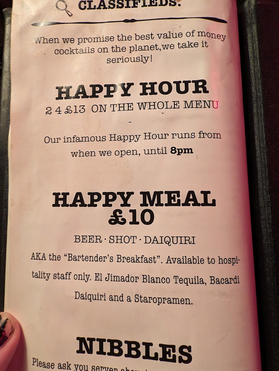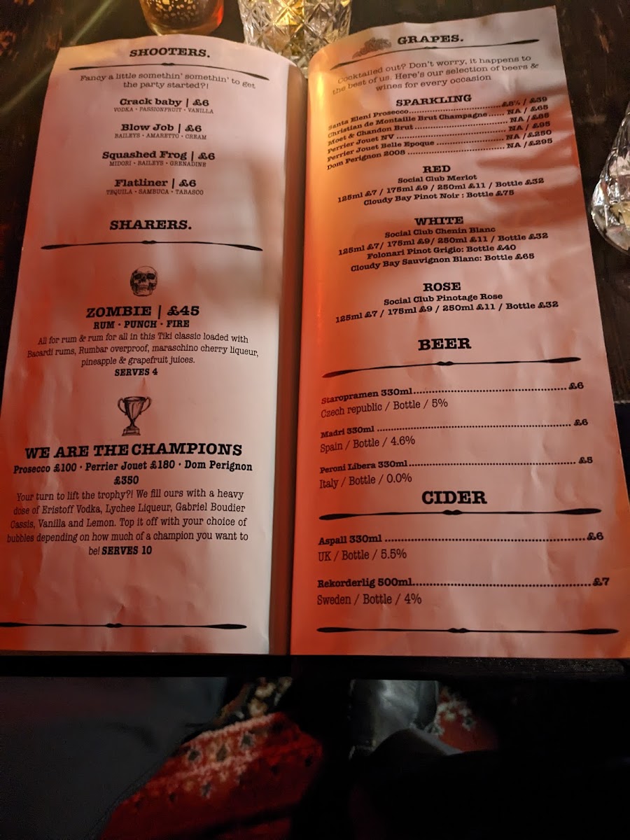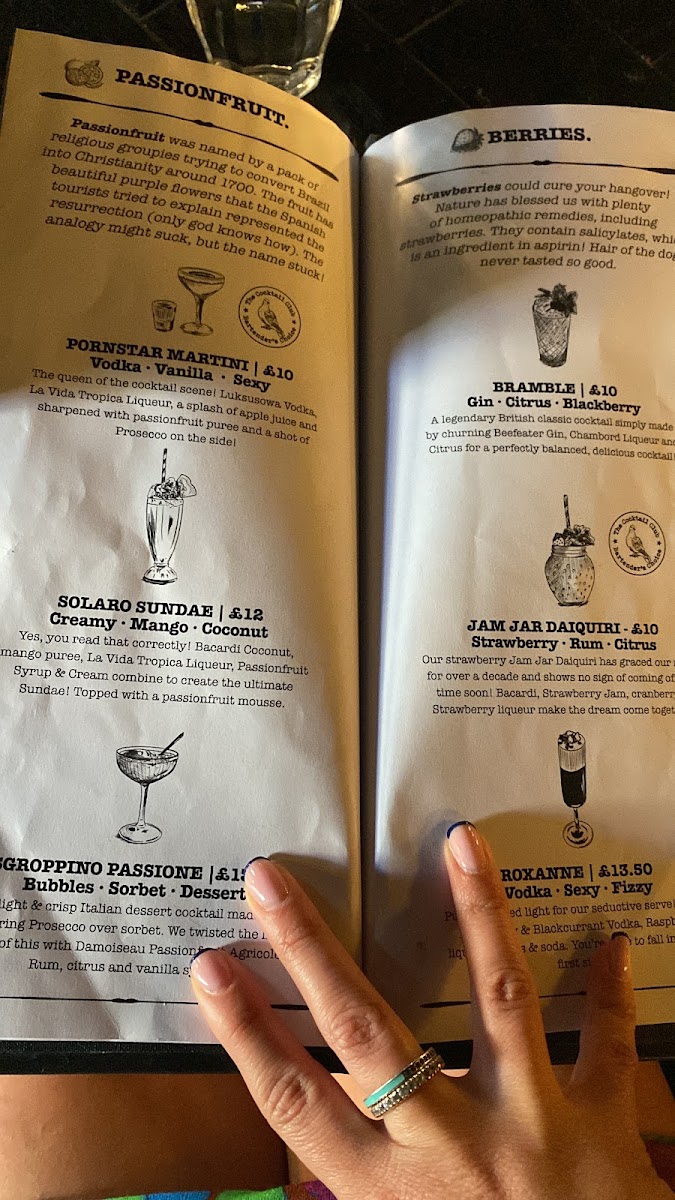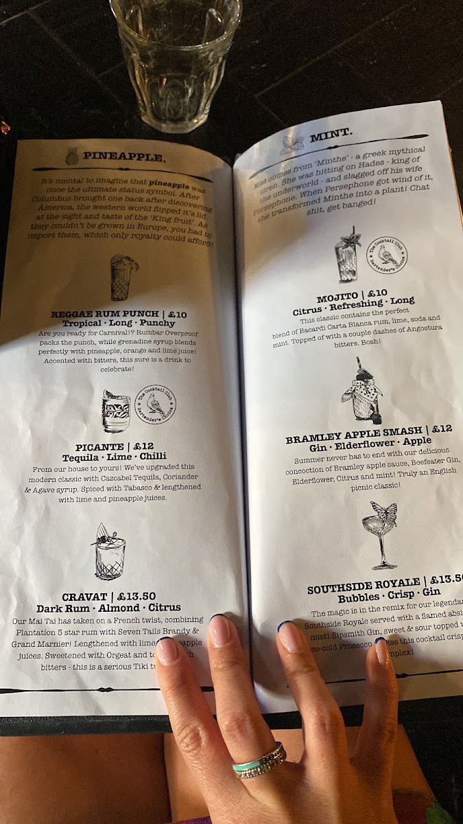 The menu leans heavily into the art of mixology, showcasing inventive cocktails that reflect both classic inspiration and modern flair. Signature drinks like the “Bulleit Proof” and “Lavender Haze” stand out not only for their catchy names but for their bold, balanced flavors-often combining smoky bourbons, botanical gins, or infused liqueurs with fresh herbs and homemade syrups. Prices are what you'd expect for the area, averaging £12-£15 per drink, but the quality more than justifies it.